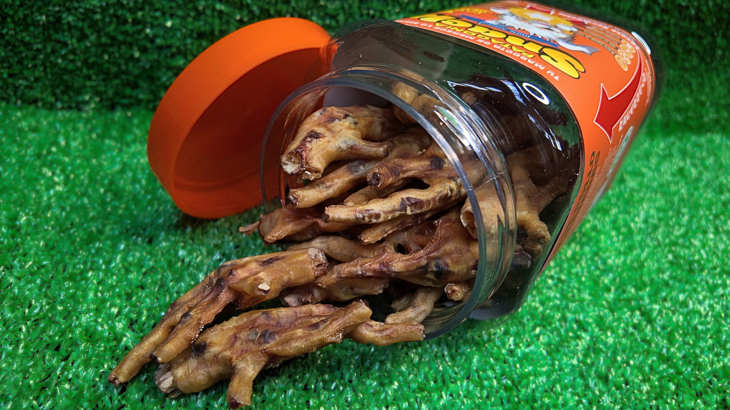 Práctico frasco con patitas de pollo deshidratadas, perfectas para premiar a tu perro en cualquier momento. Mantiene la frescura y nutrición de manera segura y cómoda. Formato: Frasco 450 gramos